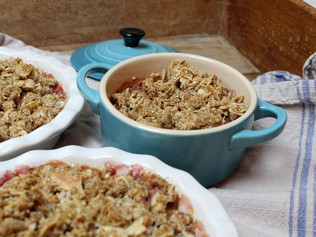 Crumble heißt übersetzt Krümel. Im Prinzip ist es ein einfaches Rezept bei dem Früchte mit Streusel überbacken werden. Rezepte für Crumble tauchen laut Wikipedia erst im 20. Jahundert auf. Dafür ist es umso einfacher abzuwandeln. Je nach Saison und je nachdem was gerade zu Hause ist. Mit Nüssen, Haferflocken, ohne Mehl, mit Kokosflocken, … Der Phantasie sind keine Grenzen gesetzt. Gerne wird er mit Vanillesauce oder Eis serviert. Ich kann mir Naturjoghurt sehr gut dazu vorstellen. Mehr gibt es zu dem schnellen Rezept auch nicht zu sagen.