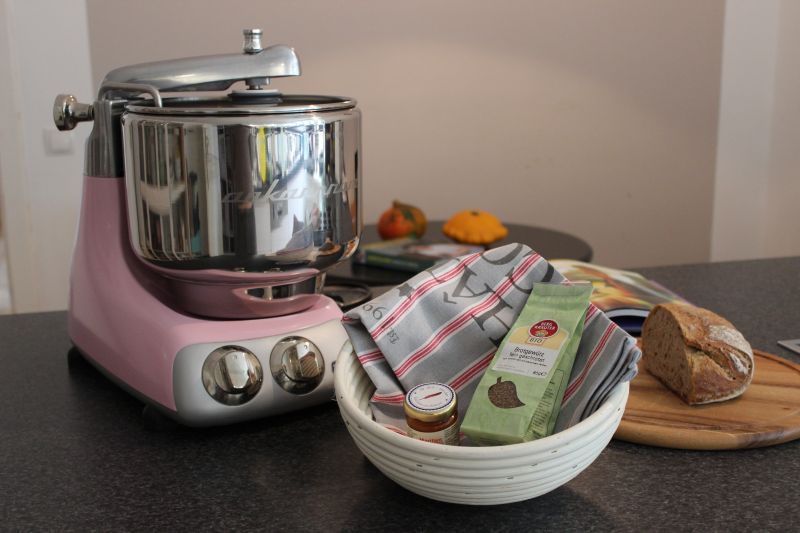 - Die Ankarsrum Assistent steht sehr stabil auf Gummifüssen und bewegt sich auch bei schweren Teigen nicht von der Stelle (wenn sie waagrecht steht). Sie verfügt über einen Überlastungsschutz und würde sich im Fall der Fälle abschalten. Wir hatten aber bisher auch bei sehr langer und mehrmaliger Teigproduktion hintereinander noch nie den Fall.